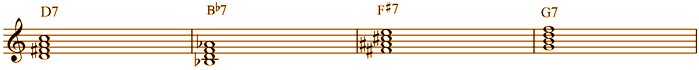Aşağıda bazı dominant yedili akor örnekleri gösterilmiştir.