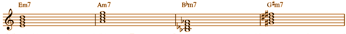 Aşağıda bazı minör yedili akor örnekleri gösterilmiştir.