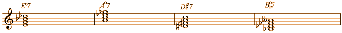 Aşağıda bazı eksiltilmiş yedili akor örnekleri gösterilmiştir.