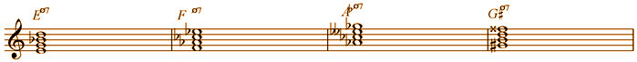 Aşağıda bazı yarı eksiltilmiş yedili akor örnekleri gösterilmiştir.