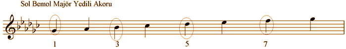 Örnek 2: Sol Bemol majör yedili akorunu bulalım: