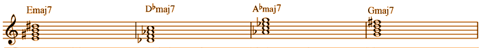 Aşağıda bazı majör yedili akor örnekleri gösterilmiştir.